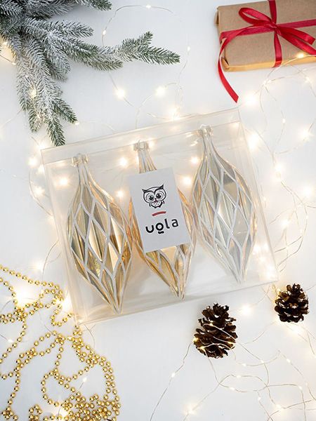 На выставке ChristmasBox Podarki 2026 компания представит Набор пластиковых елочных украшений из коллекции Ugla «Золото». В наборе три элегантных украшения из прочного пластика. Каждое изделие украшено вертикальным резным орнаментом, который словно обнимает всю его длину, создавая эффектный визуальный акцент. Грани украшений покрыты белым глиттером, добавляя красивого сияния.